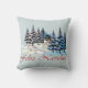 Ein hübsches Kissen, das eine Hütte im Wald darstellt. Feliz Navidad.