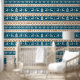Weihnachts-festliches Muster aus mehreren horizontalen Bands. Die Farbpalette ist in aquamarinen, weißen und warmen Orangetönen gehalten