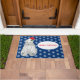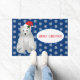Doormat mit einer blauen Hintergrundfarbe mit einem niedlichen festlichen Eisbärenprint. Passen Sie diese Matte an oder kaufen Sie, wie es ist.