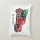 Fügen Sie eine Touch von Vintagem Ihrem Feiertagsbauernhausdekor diese Jahreszeit mit diesem retro lumbalen Throwkissen hinzu. Dieses Ausrüstungsbeschreibungen ein klassischer roter Lieferwagen-LKW mit einem frischen Weihnachtsbaum in der Rückseite auf einem weißen Hintergrund und grünen Schneeflocken besprühten herum. Ist unten Ihr Familienname, damit Sie in einer modernen schwarzen Typografie personifizieren. Entworfen durch weltberühmtes Künstler ©Tim Coffey.