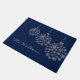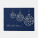 Stilvolle Ferienmatte aus dunkelblau, mit Grafiken von silberfarbenen Schneeflocken Weihnachtsballer Ornamente. Personalisieren Sie den grauen Text, um zu lesen, was Sie gewollt haben. Was für eine schöne Art, Gäste während der Ferien auf Ihrem Zuhause willkommen zu heißen.