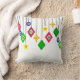 Dieses Kissen hat eine Sammlung von Ziergegenständen, die aus Diamantformen, Kreise und Sternen zusammenhängen.