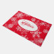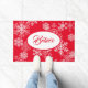 Glaube Doormat Doormat mit einer roten Hintergrundfarbe und einem festlichen Weihnachtsschneeflocken gedruckt. Passen Sie diese Matte an oder kaufen Sie, wie es ist.