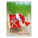 Seesterne im Strandstuhl mit Drink und mit Sternensonne und rotem Bikini Boden