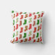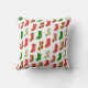 Dieses Kissen hat ein Weihnachtsdesign von Strümpfen, die mit verschiedenen Motiven auf ihnen herum gestreut sind.