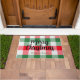 Dieses Design zeichnet sich durch einen karierten, weißen, grünen und roten Büffel-Hintergrund mit einem anpassbaren Familiennamen aus. Gute Ferien!