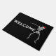 Lustige alternative Fußmatte für die Feiertage. Diese Weihnachtswillkommensfußmatte kennzeichnet ein betupfendes Skelett, das eine Weihnachtsmannmütze trägt.