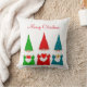 Moderne niedliche Weihnachtszwerge in Rot, Blau und Grün auf weißem Kissen gekleidet. Text nur auf der Vorderseite! Frohe Weihnachten!