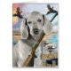 Weimaraner gegen einen bunten Hintergrund der blauen Himmel, des blauen Stromes und der Fliegenfasane in einer Jagd-Pose in dieser einer netten Grußkarte. Wenn Sie ein Weimaraner jagen oder haben, macht dieser Entwurf eine attraktive Anmerkungskarte auch.