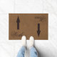 Diese Fußmatte kennzeichnet zwei Pfeile, die in entgegengesetzte Richtungen zeigen. Ein Pfeil zeigt Sie weg von Ihrem Haus auf Arbeit; der andere Punkt zum Innere für Wein.