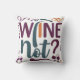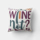 Ein modernes und stilvolles Design mit dem Text "Wine Not?" in einem gewagten, geometrischen Schriftart, mit farbenfrohen Formen und Linien, die sich miteinander verbinden und die Eleganz und den Genuss des Weins darstellen.