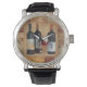 Uhr, Vintage Männeruhr mit schwarzem Lederarmband