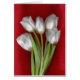 Weiche, weiße Tulpen auf einem Hintergrund des hellen roten Gewebes.