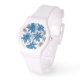 Das ist ein originelles Aquarellbild von blau-weißen Blume.