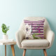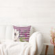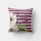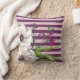 Hübsche Pflaume und weißes Blumenkissen mit zwei Farbpflaumenstreifen.