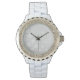 Weiße, blumengeprägte Namensinitialen personalisie Armbanduhr