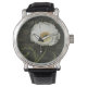 Uhr, Vintage Männeruhr mit schwarzem Lederarmband