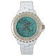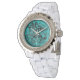 Sie sind für eine Leckerei mit der Women's Horse Rider White Enamel Sparkle Watch, die ein Frauenmotiv auf einem Pferd auf einem Rücken von Aquamarinen für eine wunderschön bespielte Armbanduhr hat, umgeben von einer Rhinestones-Verkleidung, um daraus ein atemberaubendes Uhrwerk mit künstlerischem Wert für eine Dame oder Mädchen zu machen.
