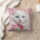 Weiße Katze mit rosa Ribbons Kissen