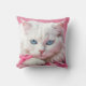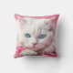 Weiße Katze mit rosa Ribbons Kissen
