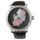 Weiße Katze Peach Lavendel Pink Roses Armbanduhr