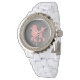 Weiße Kristall Pink Poodle Frauenwache Armbanduhr