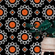 Dieses auffallende Fußbodenmotiv verbindet Tradition mit zeitgenössischem Flair. Das Design zeichnet sich durch große, lebendige orangefarbene Kreise aus, die jeweils mit feinen weißen mandalaähnlichen Motiven verziert sind. Diese zentralen Designs verbinden sich mit kleineren geometrischen Formen und schaffen ein Gefühl der Kontinuität über den schwarzen Hintergrund. Die Farbgestaltung besteht aus lebhaften Orange, knalligem Weiß und tiefschwarz. Diese Tapete ist perfekt geeignet für kleine Wände oder Wände und verleiht Wärme und Tiefe bei der Erstellung einer Aussage. Ob Zuhause-Büro oder gemütliche Lounge, dieses Design wird die Augen und Gespräche begeistern.