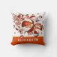 Das Basketballkissen dieses coolen Mädchens zeigt eine "Explosion" orangefarbener und weißer Basketbälle in verschiedenen Größen und graue und orangefarbene Sternenformen, auf der man seine Trikotnummer personalisieren kann - der orangefarbene Stern weist ein winziges Muster weißer Polka-Punkte auf - passt den Namen des Athleten auf einem orangefarbenen Streifen am unteren Rand des Kissens an - katz_d_d_zynes