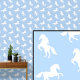 Weiße Pferde auf weichem, blauen Tapete
