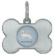 Desteis originelle Cartoon-Illustration eines niedlichen Weißschweizer Hirten / Weißfarben Deutscher Schäferhund. Die Hintergrundfarbe ist blau, kann aber auf Wunsch auch in andere Farben geändert werden. Es gibt auch einen personalisierbaren Textbereich für eine Telefonnummer oder den Namen des Hundes zum Beispiel.