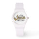 Damen Sporty White Silicon Watch "Aka NaNa/Großmutter Seit 20XX Dieses Design kann zu jeder der vielen verschiedenen Farben und Stile Uhren hier hinzugefügt werden. Personalisieren Sie den Text "Aka, Seit 20XX" und ersetzen Sie ihn mit Ihren eigenen Worten. Verwenden Sie Ihren bevorzugten Schriftart Stil, Größe und Farbe. Macht ein großartiges Geschenk für sich selbst oder jemand anderen. Stil: Die Sporty White Silicon Watch Mit einer komfortablen Silikonband ist diese Uhr perfekt für den Trainingskrieger in Ihnen! Machen Sie es sich selbst, indem Sie das Uhrengesicht mit einem inspirierenden Zitat, Bild oder Design anpassen. Armbanduhr-Material für Frauen: Ständer: Silikongehäuse: Abmessungen: 1,18" Durchmesser Ständer: 9,5" x 0,79" Gehäuse: 1,57" Durchmesser Gewicht: 0,082 lb 3-Hand-Analogon Japan Quarz® Vollfarbiger, kundenspezifischer Druck auf der Vorderseite verfügbar in 2 Farben - Weißer und rosa Verschluss Dusch-sicher 1 Jahr Hersteller eingeschränkte Garantie Akku enthalten Dieses Produkt wird für Alter ab 13 Jahren empfohlen