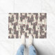 Nahtloses Muster mit weißem, grauem, gestreiftem Tablett und gepunkteten Katzen