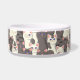 Nahtloses Muster mit weißem, grauem, gestreiftem Tablett und gepunkteten Katzen