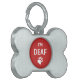 Einfache rote und weiße Markierung für taube Haustiere. "I'm tauf" Text in der Mitte und eine kleine, weiße Pfote gedruckte Silhouette unten.