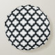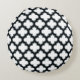 Weiße und schwarze Trellis, Gitter, Quatrefolie Rundes Kissen