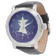 Uhr, Vintage Männeruhr mit schwarzem Lederarmband