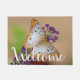 Weißer Pfauenschmetterling auf violetten Blumen Fußmatte