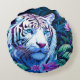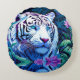 Weißer Tiger in violetten Blumen Rundes Kissen