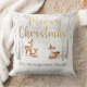 Weißer Winter Wald Hirsch & Gold Frohe Weihnachten Kissen