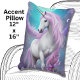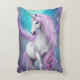 Weißes Einhorn mit violetten Blumen und Mond Dekokissen
