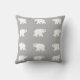 Weiße Elefantenmuster auf hellgrauem Kissen.