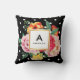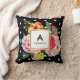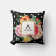 Dieses stilvolle Kissen kennzeichnet schöne rosa Watercolorpfingstrosen-Blumen, auf EHITE Polkapunkten AUF SCHWARZEM Hintergrund.