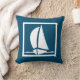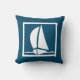 ein Teil des Ozeanseegedächteten weißen Segelbootes auf einer Seite auf marineblau blauem Kissen und ein marinebasierter und weißer Streifen auf der Rückseite.