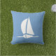 Weißes Segelboot in blau | Nautische Streifen hint Kissen