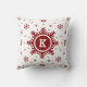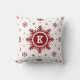 Personalisiertes Monogramm Weihnachtskissen mit roten Schneeflocken des Feiertags und Schneeweißhintergrund. Kundenspezifisches weißes Kissen mit roten Schneeflocken. Große Schneeflocke in der Mitte des Kissens, in dem Sie Ihre Initiale addieren können. Zusätzliches Kissen der einzigartigen WeihnachtsWohngestaltung - besonders angefertigt mit Ihrem Monogramm.