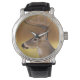 Uhr, Vintage Männeruhr mit schwarzem Lederarmband