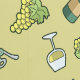 Weißwein. Flasche, Glas, Korkenzieher und Trauben. Nahtloses Muster. Benutzerdefinierte Hintergrundfarbe.