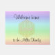 An elegant and chic welcome mat. Golden flower of life with the pink inscription love and a pastel background.