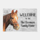 Willkommen auf der Zuhause "Ihr Familienname" oder wechseln Sie in die Hütte. Eine Begrüßungsmatte zum Thema Reiten für die Lieben, mit ihren Pferden zu reiten oder zu konkurrieren.