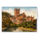 Karte mit einem Vintage-Bild der Wells Kathedrale in Somerset, England. Digital gereinigt, verbessert und künstlerisch gerendert, um Stift und Tinte mit Aquarellen zu ähneln. Pergamentstruktur innen, mit Beschreibung auf der Rückseite, die lautet: "Der Bau der Kathedrale in Wells, in Somerset, England begann etwa 1175, bis zum Entwurf eines unbekannten Architekten. Wells ist die erste Kathedrale in England, die von ihrer Gründung an im gotischen Stil erbaut wurde. Der Bau wurde fast 200 Jahre später abgeschlossen, und der ursprüngliche Plan wurde mehrfach geändert und erweitert." Erhältlich in zwei Größen; weißer Umschlag inklusive.